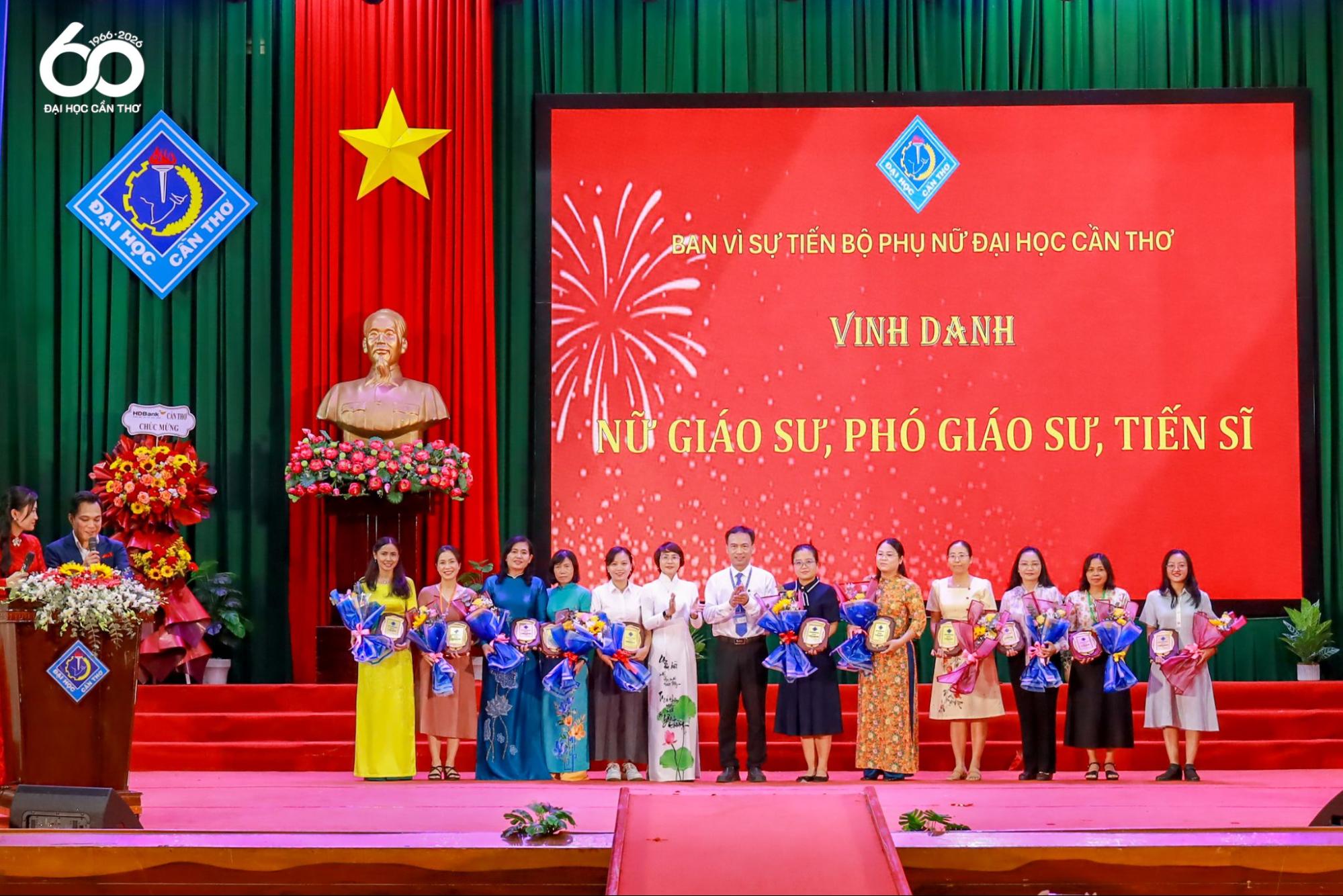 Trong khuôn khổ chương trình, Công đoàn ĐHCT đã vinh danh các nữ viên chức đạt học vị Tiến sĩ, chức danh Giáo sư và Phó Giáo sư trong năm 2025 nhằm tôn vinh những nỗ lực, đóng góp của nữ viên chức nỗ lực trong học tập, nghiên cứu và công tác chuyên môn. Bên cạnh đó, Công đoàn Giáo dục Việt Nam và Công đoàn ĐHCT đã trao hỗ trợ cho viên chức, người lao động có hoàn cảnh khó khăn. Trong dịp này BTC cũng đã tri ân những hỗ trợ, đóng góp của các đối tác, đơn vị tài trợ đã đồng hành cùng chương trình.