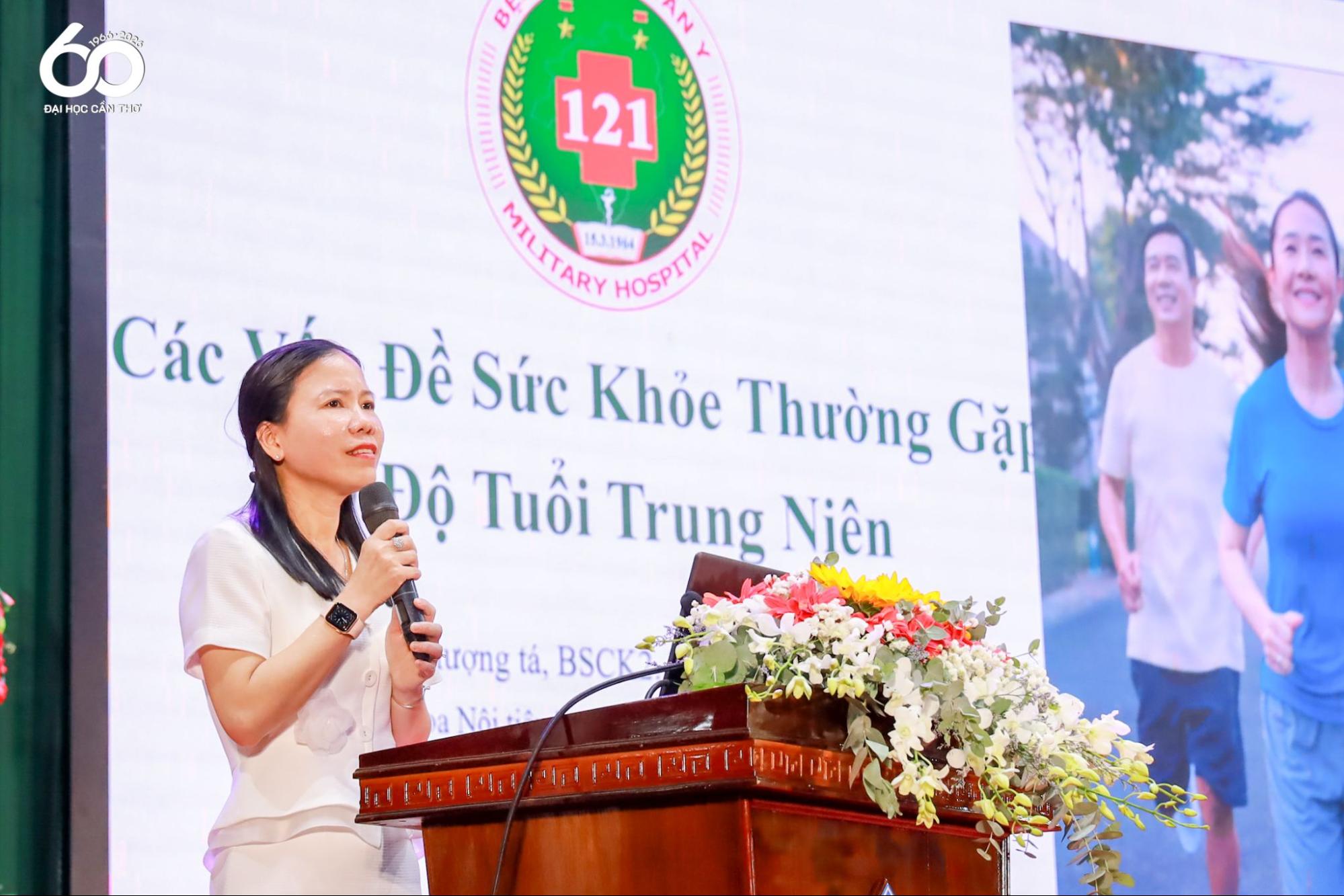 Một trong những điểm nhấn của chương trình là Báo cáo chuyên đề “Ngày Xuân nói chuyện sức khỏe trung niên” do Thượng tá, BS.CKII Lê Thị Ánh Như – Chủ nhiệm Khoa Nội tiêu hóa – Huyết học lâm sàng, Bệnh viện Quân y 121 trình bày. Chuyên đề tập trung vào các nội dung thiết thực như: gánh nặng bệnh tật thường gặp ở lứa tuổi trung niên; chế độ dinh dưỡng khoa học trong dịp Tết để phòng ngừa tăng đường huyết, mỡ máu; cảnh báo và phòng ngừa nguy cơ đột quỵ trong mùa lạnh, giao mùa; đồng thời hướng dẫn các bài tập vận động đơn giản, phù hợp cho giảng viên và người lao động.